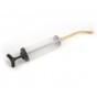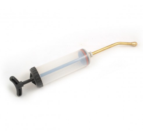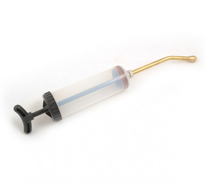 Seringue drogueuse en matière plastique translucide avec graduation en relief. Résistante à l’eau bouillante. Muni d’une canule de diamètre 10mm en laiton. Disponible en deux contenances 300ml et 450ml.