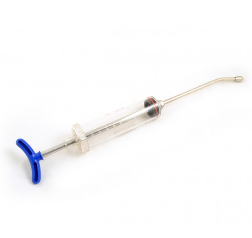 Seringue drogueuse en acétate de cellulose. Résistante aux chocs. Livrée avec une canule. Disponible en deux contenances 100ml ou 250ml.
